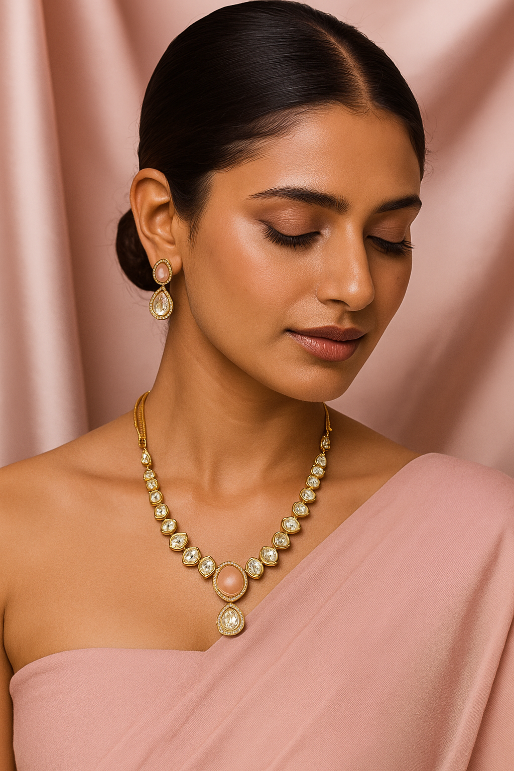 Based in Mysore, Karnataka, our collections bring together the finest of Kundan, South Indian, AD (American Diamond), Rajwadi, and Moissanite jewellery — each piece thoughtfully designed to elevate every occasion, from daily elegance to grand celebrations..